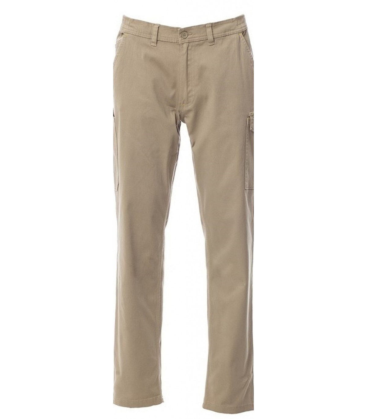 Pantalón con trabillas y elástico en la cintura, cierre con cremallera y botón. Dos bolsillos delanteros de corte clásico, bolsillo pequeño portamonedas, soporte para metro lateral derecho, bolsillo lateral izquierdo con tapeta de cierre LOCK SYSTEM, dos bolsillos posteriores, uno con tapeta y velcro. Costuras de triple aguja.